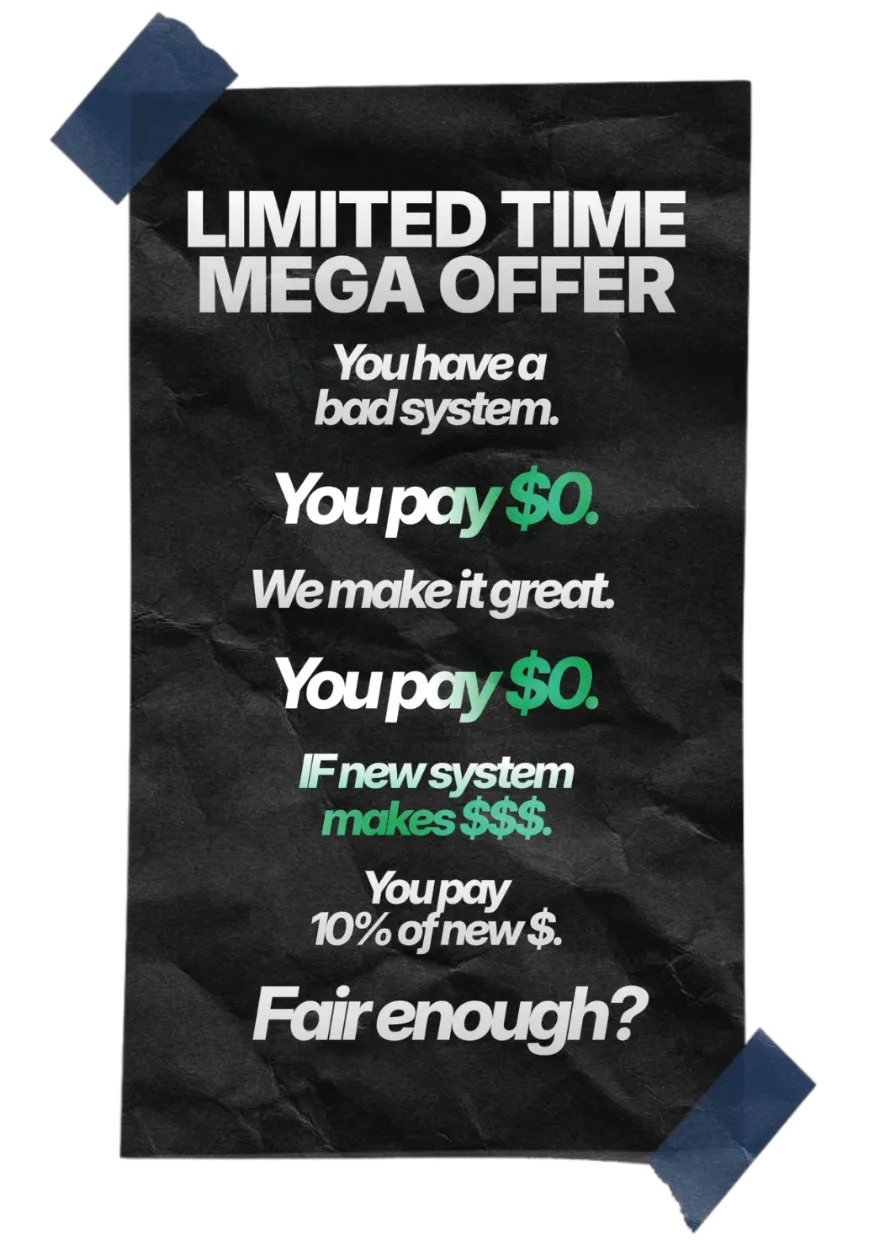 Yes. You don’t pay a cent until your new funnel is live and producing results. We take the risk - you take the reward.